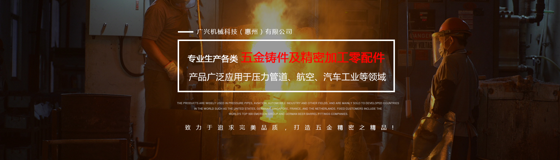 公司專業生產各類五金鑄件及精密加工零配件,可熔煉材質為全系列不銹鋼及碳鋼,主要生產材質有304316、316L17-4、430、409等,年生產各種不銹鋼鑄件1000余噸。產品廣泛應用于壓力管道、航空、汽車工業等領域,主要銷往美國、德國、新加坡、法國、荷蘭等世界發達國家,固定客戶有世界500強艾默生集團及德國啤酒桶配件公司。